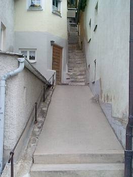 Kleine Hanggasse nicht betonieren sondern pflastern, wirkt sonst "tot